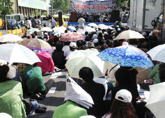¡ã Á¾±³ÀÚÀ¯ »çÇÐÀÚÀ²! 16ÀÏ ¿ÀÈÄ ¼­¿ï ¿µµîÆ÷±¸ ¿­¸°¿ì¸®´ç»ç ¾Õ¿¡¼­ °¡Áø ±âµ¶±³»çȸåÀÓ ÁÖ°üÀÇ '»çÇйý Àç°³Á¤ Ã˱¸ NGO¿¬ÇÕ ±âµµÈ¸'. ÀÌ ³¯ ±âµµÈ¸´Â 12°³ Âü¿©´Üü°¡ ÇÔ²²Çß´Ù. @Konas.net