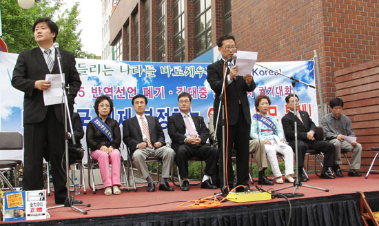 È« ¼ÒÀåÀº À̾î "Áö±Ý ¿ì¸®°¡ ¾î¹°¾î¹° Àڽŵµ ¸ð¸£´Â »çÀÌ¿¡ °Ç±¹°ú »ê¾÷È ¼¼·ÂÀÌ Àϱ¸¾î ¿Â ´ëÇѹα¹ÀÌ ÀûÈµÇ¾î °¡°í ÀÖ´Ù. ¸ðµÎ°¡ ±È±âÇÏ¿© DJÀÇ ¹æºÏÀ» ¸·°í ÀÌ ¶¥ÀÇ À¯ÀÏÇÑ ÇÕ¹ýÁ¤ºÎÀÎ ÀÚÀ¯´ëÇѹα¹ÀÇ Á¤Å뼺À» ÁöŰ°í ¼öÈ£ÇØ ³ª°¡ÀÚ"°í ¿ª¼³Çß´Ù.