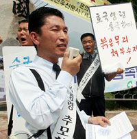 Á¦51ÁÖ³â ÇöÃæÀÏÀÎ 6ÀÏ ¿ÀÀü ´ëÀü ±¹¸³ÇöÃæ¿ø¿¡¼´Â ±èâ·æ(¿¹ À°ÁßÀå) Àü Ư¹«ºÎ´ëÀå ¹¦¿ªÀ» ÀÌÀüÇÏ·Á´Â ¹ÎÁ·¹®Á¦¿¬±¸¼Ò ȸ¿øµé°ú À̸¦ ÁöŰ·Á´Â º¸¼ö¿ìÀÍ´Üü ȸ¿øµé »çÀÌ¿¡ ÇѹÙÅÁ ¸Â´ë°áÀÌ ¹ú¾îÁ³´Ù. ´ëÀü ÇöÃæ¿ø ¾Õ Ⱦ´Üº¸µµ¸¦ »çÀÌ¿¡ µÎ°í ¹ú¾îÁø ¾çÃø ȸ¿øµéÀº ¼·Î È®¼º±â¸¦ Ʋ¾î³õ°í °¢±â ´Ù¸¥ ÁÖÀåÀ» ÆîÃÆ´Âµ¥ ÀÌ ³¯ º¸¼öÃø¿¡¼´Â ¾Ö±¹Ã»³â´Üüȸ¿ø°ú ÀÚÀ¯½Ã¹Î¿¬´ë û³âȸ¿ø µî 30¿©¸íÀÌ, ±×¸®°í ¹ÎÁ·¹®Á¦¿¬±¸¼Ò ´ëÀüÁöºÎ ȸ¿øµéÀÌ 1½Ã°£¿© µ¿¾È ¼³ÀüÀ» ¹ú¿´´Ù. À̵éÀº ¼·ÎÀÇ ÁÖÀåÀ» ¹úÀÌ´Ù 12½Ã°æ Ãæµ¹ ¾øÀÌ ÀÚÁøÇØ»ê Çß´Ù.
