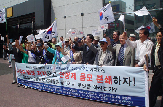ÀÌ ´ëÇ¥´Â À̾î "DJ°¡ ¹æºÏÇØ Á¦2ÀÇ Á¤»óȸ´ãÀ» ÁÖ¼±ÇÏ¸é ±¹¹ÎÀû ÇÕÀÇ ¾øÀÌ ºÏÇÑÀÇ °ø»êµ¶ÀçüÁ¦¸¦ ÀÎÁ¤ÇÏ´Â ¿¬¹æÁ¦¿¡ ÇÕÀÇÇÏ°í ´ëÇѹα¹ ÀÚÀ¯¹ÎÁÖÁÖÀÇ´Â À§Çù¹Þ°Ô µÉ °Í" À̶ó ¹àÈ÷°í "Ä£ ±èÁ¤ÀÏ ÁÂÆÄ´Üü°¡ ÁÖÃÖÇÏ´Â ±¤ÁÖ 6¡¤15Çà»ç´Â ´ëÇѹα¹À» ºÎÁ¤ÇÏ°í ºÏÇÑ ±èÁ¤ÀÏ µ¶ÀçüÁ¦¸¦ ÃßÁ¾ÇÏ´Â Úã ´ëÇѹα¹ ÀÌÀû(ì¦îØ)ÇàÀ§"¶ó°í °Á¶Çß´Ù.