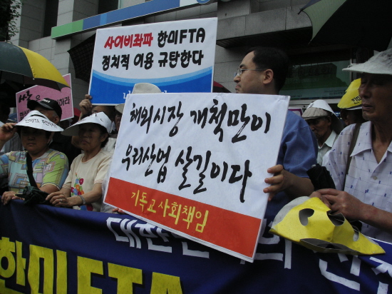 °¡µÎÇàÁøÀ» Çϸ鼭 Âü¼®ÀÚµéÀº ¡ã¹Ý´ë´Â Çϱ⠽±´Ù. ¹Ù¸¥ FTAÇÏÀÚ ¡ãÇѹÌFTA Á¤Ä¡Àû ÀÌ¿ë ¹Ý´ëÇÑ´Ù ¡ãÇù»óµµ ÇϱâÀü¿¡ ¹Ý´ë°¡ À¢¸»ÀÌ³Ä ¡ãKBS¿Í MBC´Â ¿Ö°îº¸µµ »ç°úÇ϶ó ¡ã³ó¾÷ºÎ¹® ÇÇÇØ´ëÃ¥À» ¼¼¿ì¶ó ¡ãÇØ¿Ü½ÃÀå °³Ã´¸¸ÀÌ ¿ì¸®ÀÇ »ì±æÀÌ´Ù µîÀÇ ±¸È£¸¦ ¿ÜÄ¡±âµµ Çß´Ù.