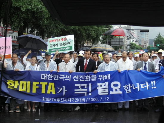 'ÇѹÌFTA ÃßÁøÁöÁö ±¹¹Î´ëȸ'¿¡ Âü¿©ÇÏ´Â ½Ã¹Î´ÜüµéÀÌ 12ÀÏ ¼­¿ï Á¾·Î5°¡¿¡¼­ Áýȸ¸¦ °®°í °¡µÎ ÇàÁø¿¡ ³ª¼¹´Ù. À̳¯ Áýȸ´Â 'ÇѹÌFTA ÃßÁø ÁöÁö ±¹¹Î´ëȸ'¿¡ Âü¿©ÇÏ´Â ¼±ÁøÈ­±¹¹ÎȸÀÇ ÁÖµµ·Î ¿­¸° °ÍÀÌ´Ù. Áö³­ 11ÀÏ¿¡´Â ´º¶óÀÌÆ®Àü±¹¿¬ÇÕ ÁÖµµ·Î ±¤È­¹®¿¡¼­ Áýȸ°¡ ¿­¸° ¹Ù ÀÖ´Ù. À̳¯ Áýȸ¿¡´Â À帶ºñ¿¡µµ ºÒ±¸ÇÏ°í ¾à 500¿©¸íÀÇ È¸¿øµéÀÌ ¸ô·È´Ù.