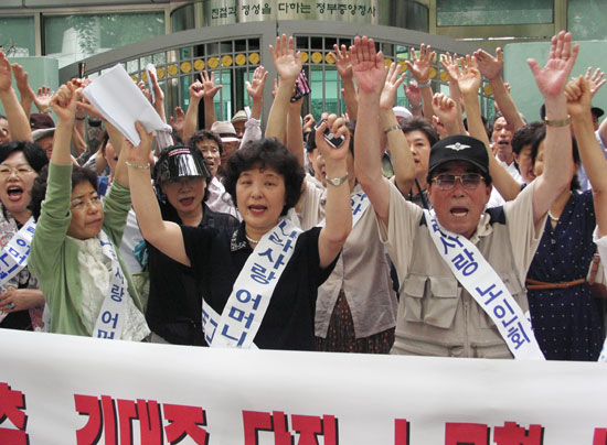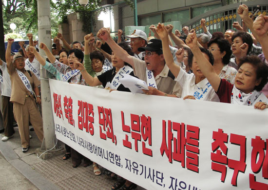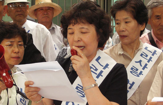 ÇൿÇÏ´Â ¿©¼º´ÜüÀÎ ³ª¶ó»ç¶û¾î¸Ó´Ï¿¬ÇÕ(´ëÇ¥ ±Ç¸íÈ£) µî ¿ìÀÍ´Üü ȸ¿øµéÀº 24ÀÏ Á¤¿À ¼¿ï Á¾·Î±¸ ¼¼Á¾·Î Á¤ºÎÁ¾ÇÕû»ç ¾Õ¿¡¼ ±âÀÚȸ°ßÀ» °®°í "ÃÖ±Ù ºÏÇÑÀÌ ÀϹæÀûÀ¸·Î Åë°íÇÑ À̻갡Á·»óºÀ Ãë¼Ò¿Í ±Ý°»ê À̻갡Á·¸éȸ¼Ò °ø»ç Áß´ÜÁ¶Ä¡ µîÀº ÇÙ °³¹ß°ú ¾Èº¸À§Çù¿¡ ¹ö±Ý°¡´Â Úã ÀεµÁÖÀÇÀû Úã ¹ÎÁ·Àû µµ¹ßÀÌÀÚ ¹è½ÅÇàÀ§"¶ó¸ç, "ÀÌ·± »óȲ¿¡¼µµ '´ëÈÀÇ ²ö' Ÿ·É¸¸ ´Ã¾î³õ´Â ÀÌÁ¾¼® Àå°üÀ» Áï°¢ ÃàÃâÇÏ°í ³ë¹«Çö ´ëÅë·ÉÀº ´ë ±¹¹Î »ç°ú¸¦ ÇØ¾ßÇÑ´Ù"°í ÁÖÀåÇß´Ù.