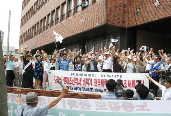 ³ª¶ó»ç¶û¾î¸Ó´Ï¿¬ÇÕ(³ª»ç¿¬)°ú ³ª¶ó»ç¶û³ëÀÎȸ, ÀÚÀ¯±â»ç´Ü ȸ¿ø µî 100¿©¸íÀº 1ÀÏ 12½Ã ¼¿ï ¿µµîÆ÷±¸ ¿µµîÆ÷2°¡ Àü±³Á¶»ç¹«½ÇÀÌ ÀÔÁÖÇØ ÀÖ´Â ´ë¿µºôµù ¾Õ¿¡¼ ±âÀÚȸ°ßÀ» ¿°í ±èÁ¤ÀÏÀ» ÃßÁ¾Çϴ ģºÏ ÀûÈÅëÀÏ ÀüÀ§´ë·Î Àü¶ôÇÑ Àü±³Á¶¿¡°Ô ´ëÇѹα¹ÀÇ ¹Ì·¡ÀÎ 2¼¼ ±¹¹Î±³À°À» ´õ ÀÌ»ó ¸Ã±æ ¼ö ¾ø´Ù¸ç Àü±³Á¶ ÇØÃ¼ ÅõÀï¿¡ ³ª¼±â·Î Çß´Ù°í ¹àÇû´Ù.