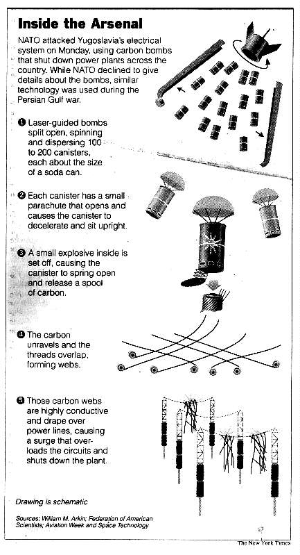 ÀûÀÇ Àü·Â¸ÁÀ» ¿ÏÀüÈ÷ ¸¶ºñ½ÃŲ´Ù´Â ÀÌ ÆøÅºÀÇ ¿ø¸®´Â ÀÌ·¸´Ù. CBU-94¾È¿¡´Â 200¿© °³ÀÇ ÀÚź(í»÷¥)ÀÌ µé¾îÀÖ´Ù(¿ø·¡ CBU´Â ÀÚźÀ» °¡Áö°í Àִ Ŭ·¯½ºÅÍ ÆøÅºÀ» ÀǹÌÇÑ´Ù). ÀÌ ÀÚź¿¡´Â 1ÀÎÄ¡ Å©±âÀÇ Èæ¿¬ Çʶó¸àÆ® ¹¶Ä¡°¡ ¼ö¹é °³ µé¾î ÀÖ´Ù. CBU-94´Â ¸ñÇ¥ »ó°ø ¾à 13000m¿¡¼­ ÅõÇϵȴÙ. ÅõÇÏµÈ CBU-94´Â °ð 200°³ÀÇ ÀÚźÀ¸·Î ³ª´²Áö´Âµ¥ ÀÚźÀº ³»ÀåµÈ ³«ÇÏ»êÀ» Æì°í ¼­¼­È÷ ³»·Á¿Â´Ù. ÀÚźÀº °ø°Ý ¸ñÇ¥ 330~200m »ó°ø¿¡¼­ ÅÍÁø´Ù. ±×·¯¸é ÀÚź ¾È¿¡ µé¾î ÀÖ´ø Èæ¿¬ Çʶó¸àÆ®°¡ ¹Ù¶÷À» Ÿ°í ¸¶Ä¡ °Å¹ÌÁÙó·³ Àü¼±°ú º¯¾ÐÀåÄ¡ µîÀ» ÈÖ°¨°Ô µÈ´Ù. Àü±â°¡ Àß ÅëÇÏ´Â Èæ¿¬ Çʶó¸àÆ®°¡ Àü¼±°ú º¯¾Ð±â µî Àü·Â½Ã¼³À» ÈÖ°¨À¸¸é Àü·Â¸Á¿¡ °úºÎÇϰ¡ °É·Á ´ÜÀüµÇ°í °á±¹ Àü·Â ½Ã¼³ ÀÚü¸¦ ¸ø ¾²°Ô µÈ´Ù. º¹±¸¸¦ À§Çؼ­´Â Àü¼±°ú Àåºñ¿¡ µé¾îºÙÀº ¼¶À¯¸¦ ¸ðµÎ Á¦°ÅÇØ¾ß ÇÑ´Ù. Çö´ëÀü¿¡¼­ C4Iü°è¸¦ ¿î¿µÇϱâ À§Çؼ­´Â ¾ÈÁ¤ÀûÀÎ Àü·Â°ø±ÞÀÌ ÇʼöÀû ¿ä¼ÒÀ̹ǷΠÀü·Â ½Ã¼³À» ¸¶ºñ½ÃÄÑ ·¹ÀÌ´õ µîÀÇ Ãʰè Àåºñ´Â ¹°·Ð Åë½Åü°è±îÁö Á¦´ë·Î »ç¿ëÇÒ ¼ö ¾øµµ·Ï ¸¸µé¾î ¹ö¸®´Â °ÍÀÌ´Ù.