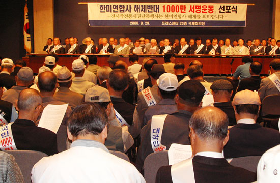 ÀÌ ³¯ 'Çѹ̿¬ÇÕ»ç·ÉºÎ ÇØÃ¼¹Ý´ë 1000¸¸ÀÎ ¼¸í¿îµ¿' ¼±Æ÷½Ä Âü¿© ´Üü´Â ´º¶óÀÌÆ®Àü±¹¿¬ÇÕ , ¼±ÁøÈ ±¹¹ÎȸÀÇ, ´ëÇѹα¹ÀçÇⱺÀÎȸ, ¼º¿ìȸ, 6¡¤25ÂüÀüÀ¯°øÀÚ Àü¿ìȸ µî ÇöÀç±îÁö 227°³ ´Üü°¡ Âü¿©Çϰí ÀÖ´Ù°í ¹àÇû´Ù.(Konas)