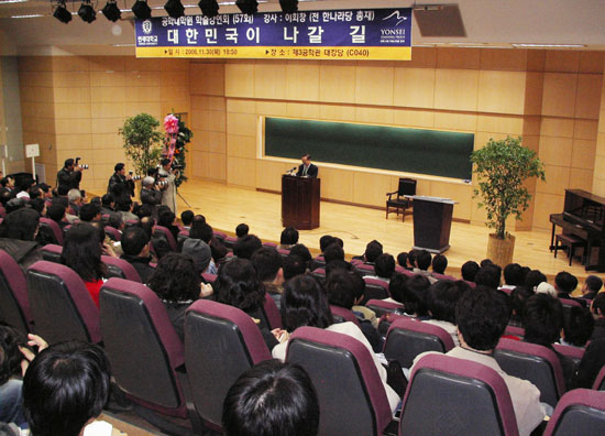 µÎ ¹ø ´ë¼±¿¡ ³ª¼± ÀÌȸâ Àü Çѳª¶ó´ç ÃÑÀçÀÇ ±ÇÀ§¿Í Àαâ´Â º¯ÇÔÀÌ ¾ø¾î º¸¿´´Ù. ÀÌ Àü ÃÑÀçÀÇ °¿¬È¸°¡ °³ÃÖµÈ ¿¬¼¼´ëÇб³ °øÇдëÇпø ´ë°´ç 400¿© Á¼®Àº ²Ë µé¾îÂ÷°í Á¿ì Åë·Î´Â ¹°·Ð ¸Ç µÚÂÊ¿¡µµ ¸¹Àº »ç¶÷ÀÌ ¼± ä·Î µé¾î¾ßÇß´Ù.