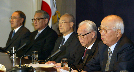| ¡ã ³²´ö¿ì Àü ÃѸ®(¿À¸¥ÂÊ)À» ºñ·ÔÇÑ ÀüÁ÷ÃѸ®µéÀÌ 29ÀÏ ¿ÀÈÄ ÇÁ·¹½º¼¾ÅÍ¿¡¼ ±âÀÚȸ°ßÀ» ¿¾î źÇÙÁ¤±¹¿¡ ´ëÇÑ ´ë±¹¹Î È£¼Ò¹®À» ¹ßÇ¥Çϰí ÀÖ´Ù./ |