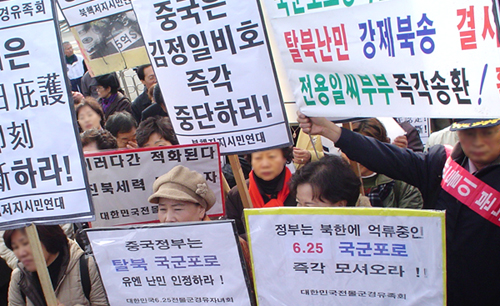 ´ëÇѹα¹ Àü¸ô±º°æÀ¯Á·È¸(ȸÀå Á¤º´¿í)¿Í ºÏÇÙÀúÁö ½Ã¹Î¿¬´ë, ¼¿ï½Ã ÀçÇⱺÀÎȸ ȸ¿ø 300¿©¸íÀº 27ÀÏ ¿ÀÀü ¼¿ï ¿ë»ê±¸ ÀüÀï±â³ä°ü ¾Õ¿¡¼ Áýȸ¸¦ °®°í Áß±¹ Á¤ºÎ°¡ ±¹±ºÆ÷·Î Å»ºÏÀÚ Àü¿ëÀÏ(72)¾¾¸¦ Á¶¼ÓÈ÷ Çѱ¹¿¡ ¼ÛȯÇÒ °ÍÀ» Ã˱¸Çß´Ù.